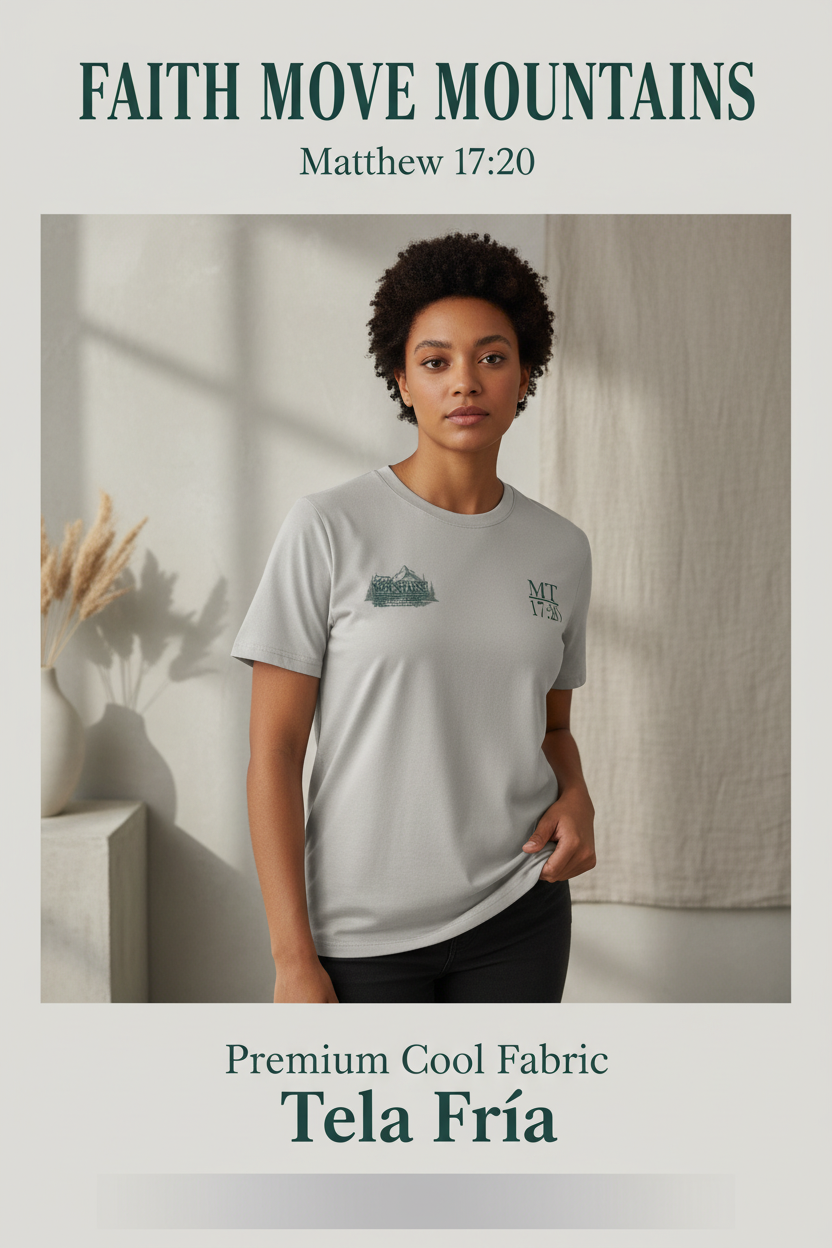Lleva tu fe contigo con esta camisa premium inspirada en Mateo 17:20. Diseñada para creyentes que buscan expresar su fe con estilo y comodidad.