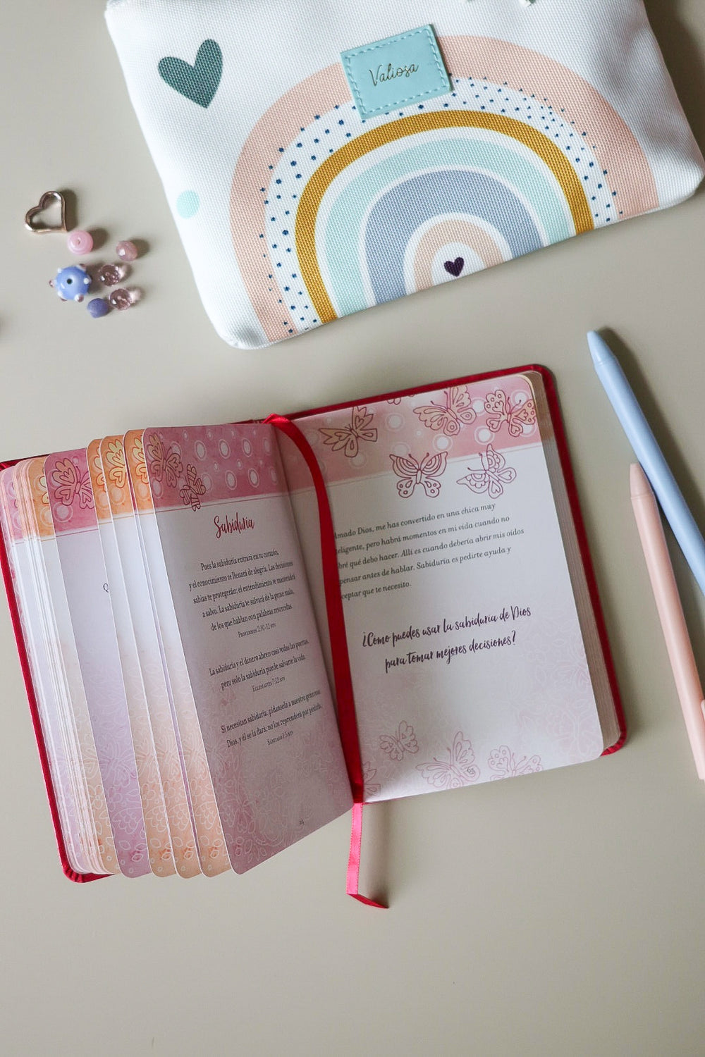 Oraciones y promesas para las niñas incorpora más de 70 temas que ayudarán a guiar a su preciosa niña a cómo conectarse con su Creador en todas las diferentes áreas de su vida; Además, la ayudará a comprender las promesas de Dios acerca de la fidelidad, la confianza, la sabiduría, el valor, la belleza, la fortaleza, y mucho más, al mismo tiempo que la animará a orar.
